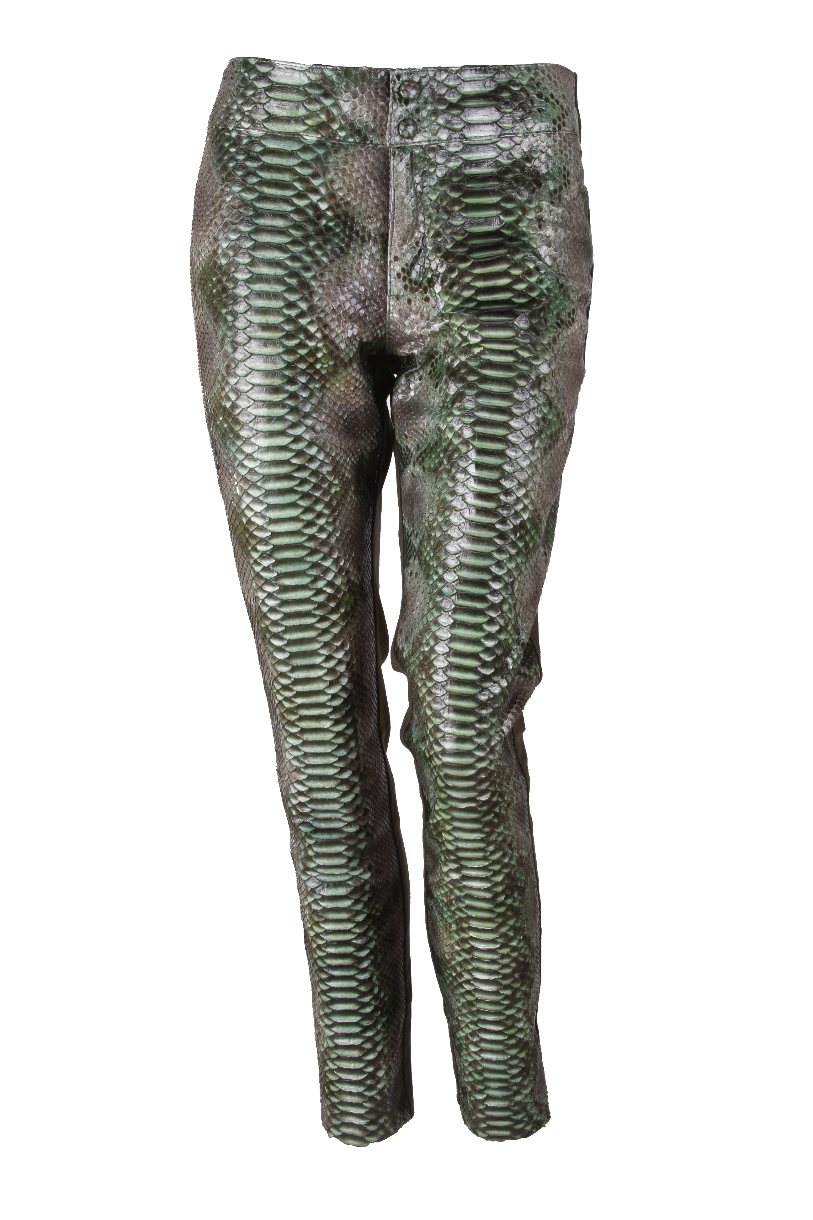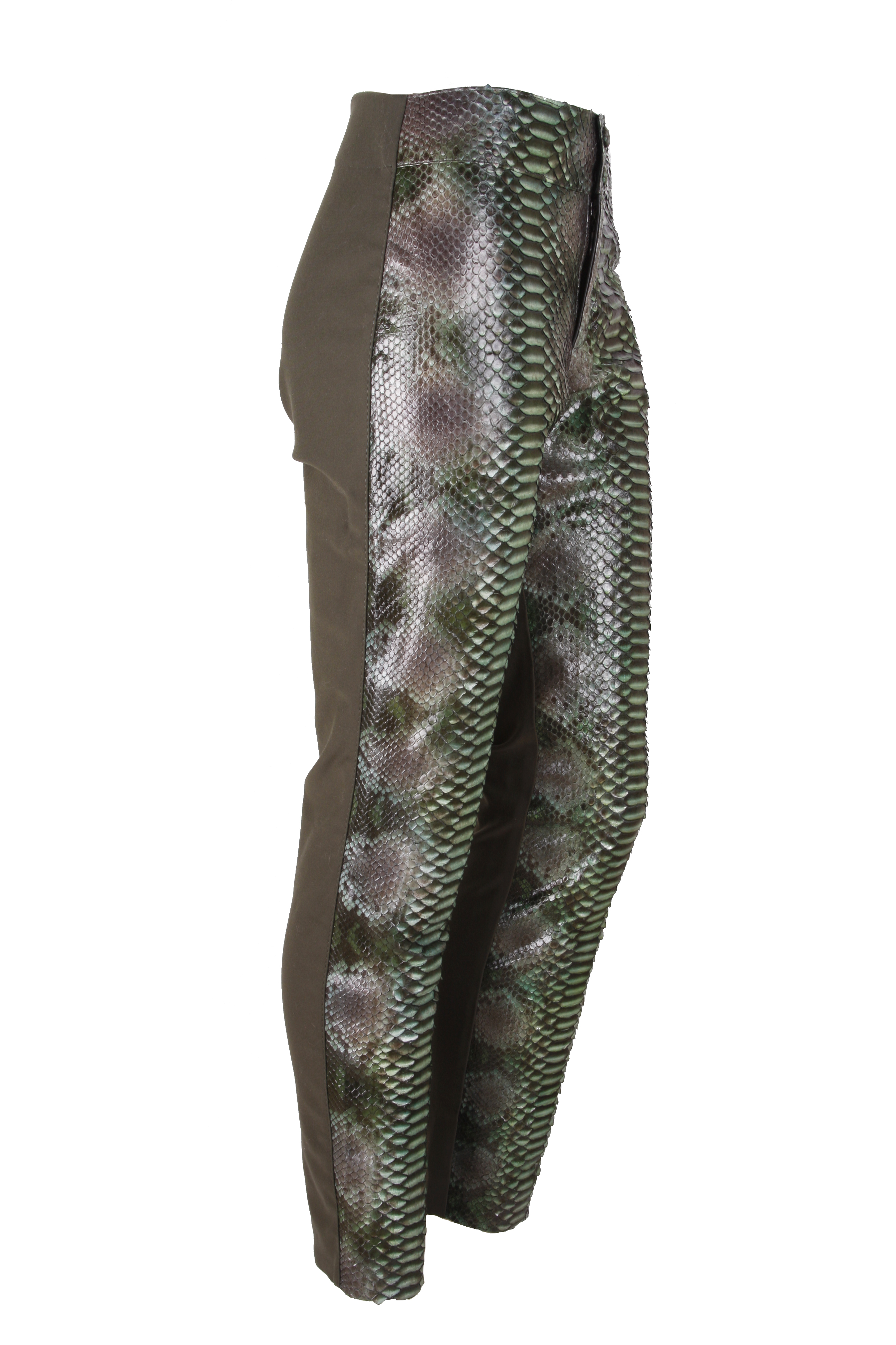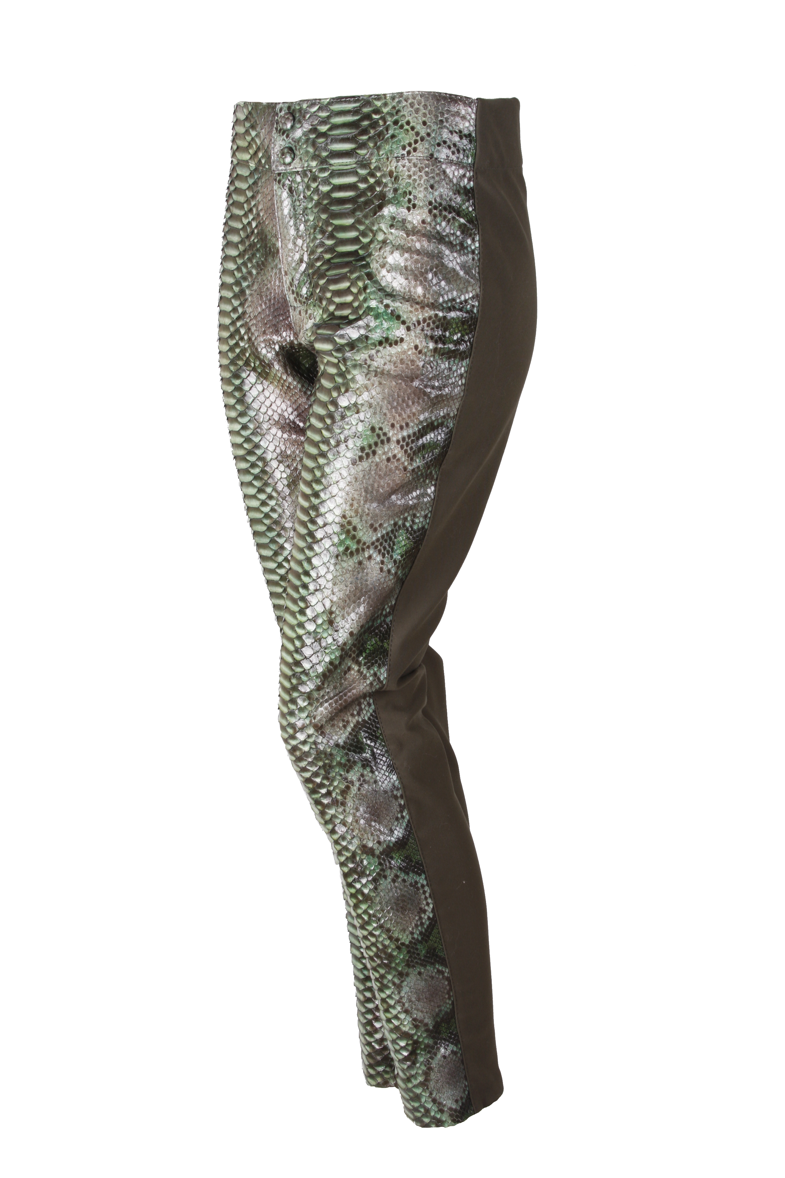 Calça justa, em pele de cobra python.